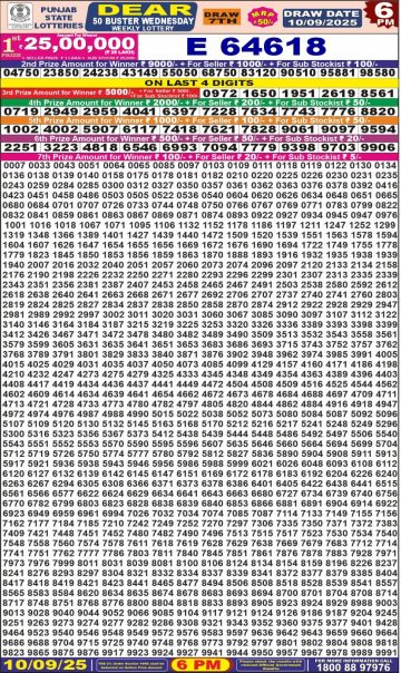 Punjab State Dear 50 Buster Wednesday Weekly Lottery 6 PM Result 10-09-25
