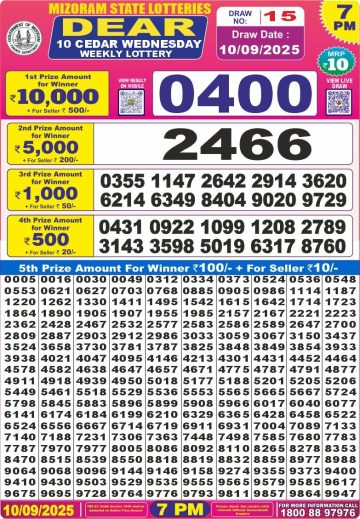 Dear 10 Cedar Wednesday Weekly Lottery 7 PM Result 10-09-25