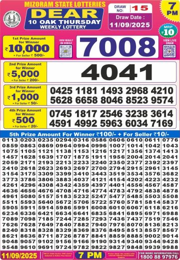 Dear 10 Oak Thursday Weekly Lottery 7 PM Result 11-09-25