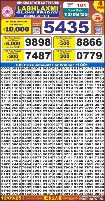 Labhlaxmi Glow Friday Weekly Lottery 4 PM Result 12-09-25