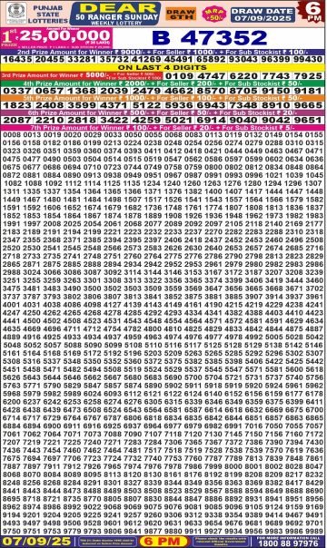 Punjab State Dear 50 Ranger Sunday Weekly Lottery 6 PM Result 07-09-25