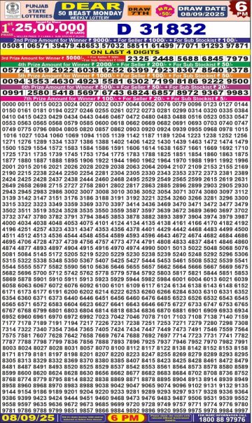 Punjab State Dear 50 Beast Monday Weekly Lottery 08-09-25