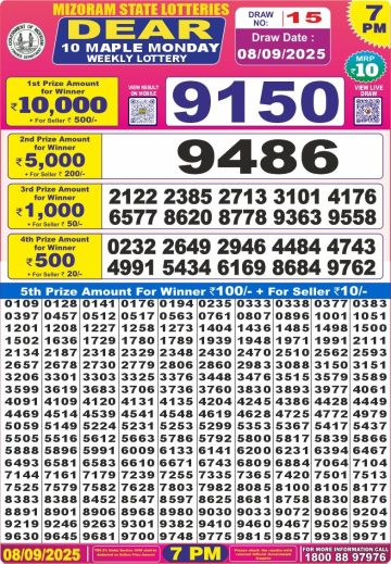 Dear 10 Maple Monday Weekly Lottery 7 PM Result 08-09-25