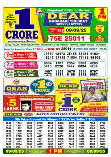 Dear Godavari Tuesday Weekly Lottery 1 PM Result 09-09-25