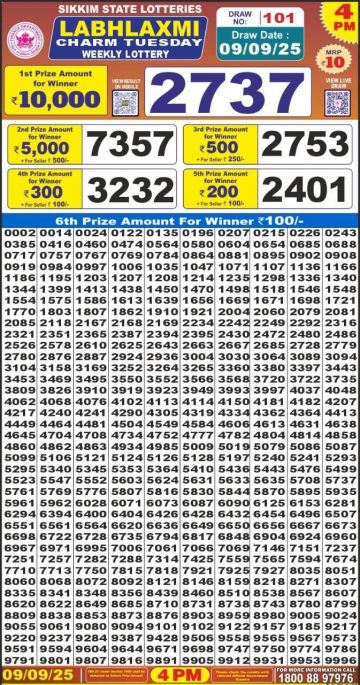 Labh Laxmi Charm Tuesday Weekly Lottery 4 PM Result 09-09-25