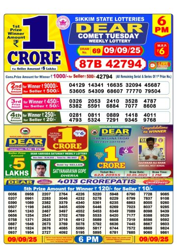 Dear Comet Tuesday Weekly Lottery 6 PM Result 09-09-25