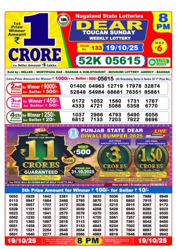 Dear Toucan Sunday Weekly Lottery 8 PM Result 19-10-25