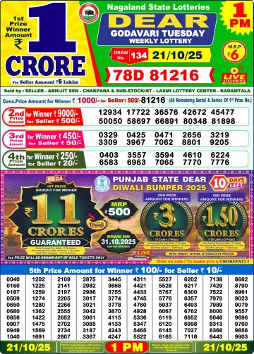 Dear Godavari Tuesday Weekly Lottery 1 PM Result 21-10-25