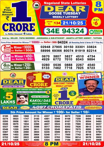 Dear Goose Tuesday Weekly Lottery 8 PM Result 21-10-25