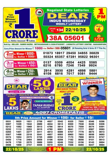 Dear Indus Wednesday Weekly Lottery 1 PM Result 22-10-25
