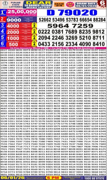 Punjab State Dear 50 Beast Monday Weekly Lottery 6pm Result 05-01-26