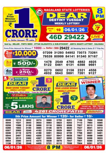 Dear Prestige Tuesday Weekly Lottery 6pm Result 06-01-26