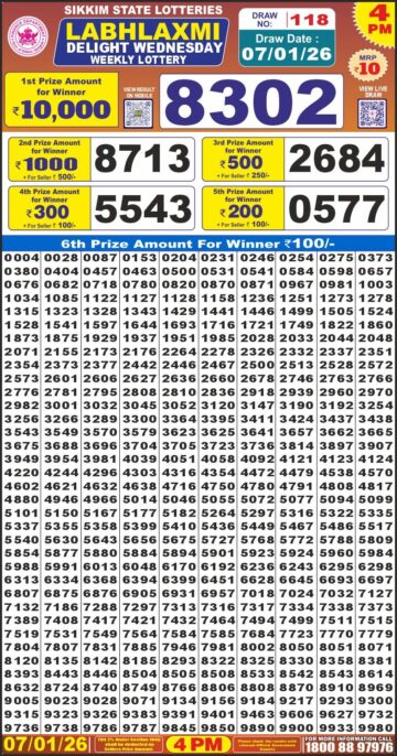 Labh Laxmi Delight Wednesday Weekly Lottery 4pm Result 07-01-26