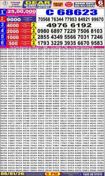 Punjab State Dear 50 chief Thursday Weekly Lottery 6pm Result 08-01-26