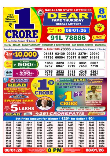 Dear Fame Thursday Weekly Lottery 8pm Result 08-01-26