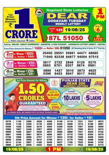 Dear Godavari Tuesday Weekly Lottery 1 PM Result 19-08-25