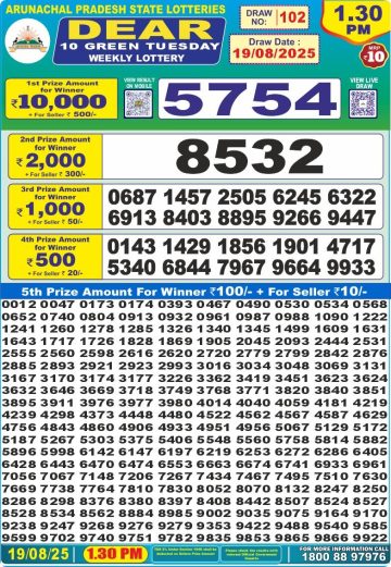 Dear 10 Green Tuesday Weekly Lottery 1:30 PM 19-08-25