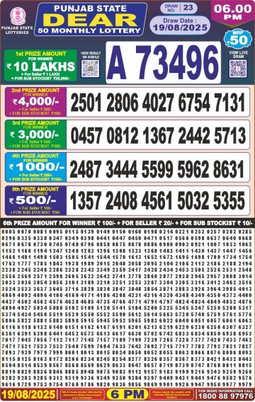 Punjab state dear 50 monthly lottery result 19.08.25 Winners