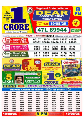 Dear Goose Tuesday Weekly Lottery 8 PM Result 19-08-25