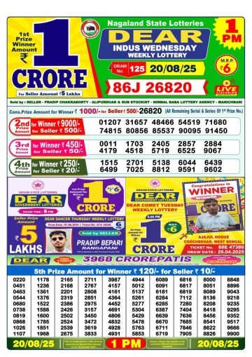 Dear Indus Wednesday Weekly Lottery 1 PM Result 20-08-25