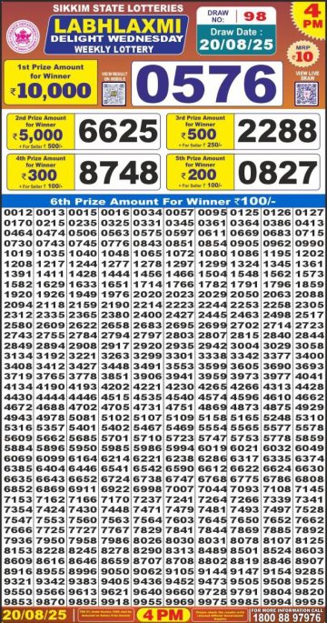 Labh Laxmi Delight Wednesday Weekly Lottery 4 PM Result 20-08-25