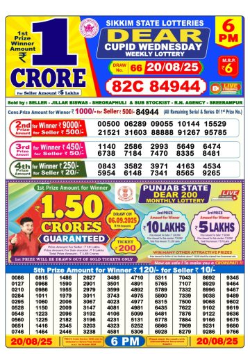 Dear Cupid Wednesday Weekly Lottery 6 PM Result 20-08-25