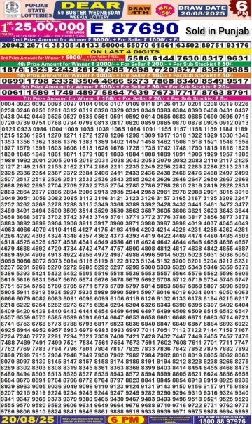 Punjab State Dear 50 Buster Wednesday Weekly Lottery 6 PM Result 20-08-25