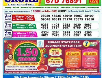 Punjab State Dear 50 Sunday Weekly Lottery 6pm Result 23-11-25