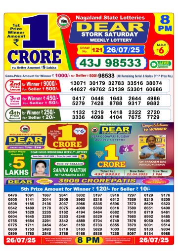 Dear donner Saturday weekly lottery 6 pm result 26-7-25