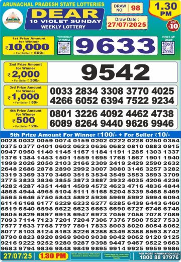 Dear 10 Violet Sunday Weekly Lottery 1:30 PM Result 27-07-25