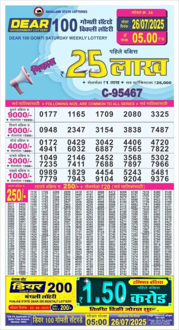 Dear 100 gomti Saturday weekly lottery 5 pm result 26-7-25