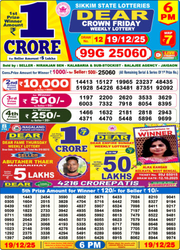 Dear Crown Friday Weekly Lottery 6pm Result 19-12-25