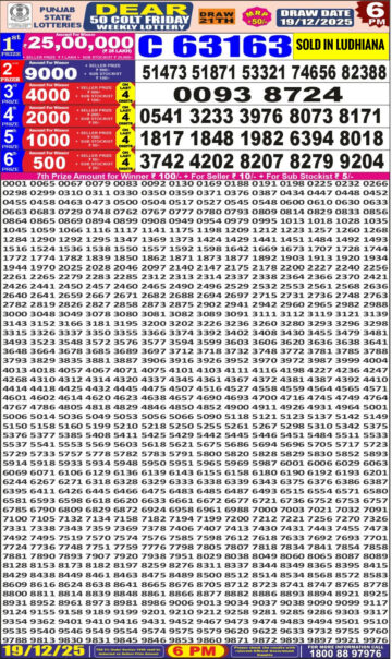 Punjab State Dear 50 Colt Friday Weekly Lottery 6pm Result 19-12-25