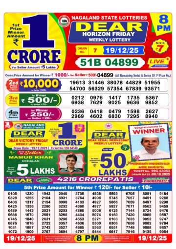 Dear Horizon Friday Weekly Lottery 8pm Result 19-12-25