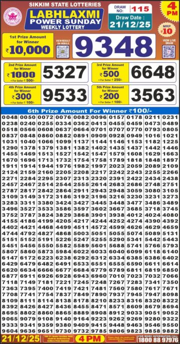 Labh Laxmi Power Sunday Weekly Lottery 4pm Result 21-12-25