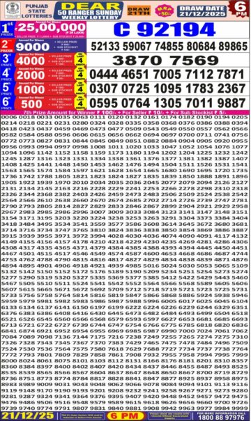 Punjab State Dear 50 Sunday Weekly Lottery 6pm Result 21-12-25