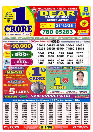 Dear Magic Sunday Weekly Lottery 8pm Result 21-12-25