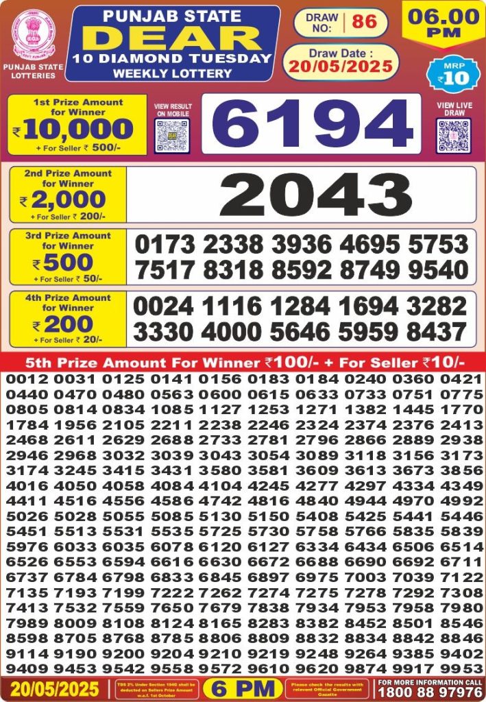 Punjab state dear 10 diamond 6 pm result 20-5-25 Results Editorial Staff May 20, 2025 Leave a Comment on Punjab state dear 10 diamond 6 pm result 20-5-25 Posted in Dear Lottery 6 PM Result Share: XFacebookPinterestRedditVKDiggLinkedinMix Dear Legend Monday Weekly Lottery Result Update 📅 Date: 20 May 2025 ⏰ Draw Time: 6:00 PM 🟢 Result Declared 🔗 View previous Dear Lottery 6 PM Result results Related Results Dear Legend Monday Weekly Lottery 6pm Result 02-03-26 Dear Empire Sunday Weekly Lottery 6pm Result 01-03-26 Dear Elite Saturday Weekly Lottery 6pm Result 28-02-26 Dear Crown Friday Weekly Lottery 6pm Result 27-02-26 Dear Supreme Thursday Weekly Lottery 6pm Result 26-02-26 Dear Regal Wednesday Weekly Lottery 6pm Result 25-02-26 Dear Prestige Tuesday Weekly Lottery 6pm Result 24-02-26 Author: Results Editorial Staff