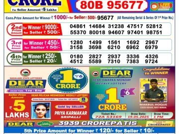 Punjab State Dear 50 Bronco Lottery 6pm Result 18-11-25 0 Likes 2 Views Share now: XFacebookPinterestRedditVKDiggLinkedinMix Related Articles 0 2 Dear Vixen Sunday Weekly Lottery 6 PM Result 10-08-25 0 4 Dear vixen sunday weekly lottery 6 pm result 13-7-25 0 4 Punjab state dear 10 platinum Thursday weekly lottery 6 pm result 24-4-25 0 5 Punjab state dear 10 silver Wednesday weekly lottery 6 pm result 9-4-25