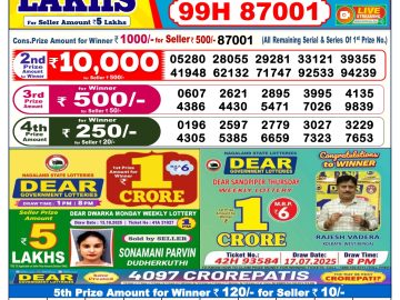 Punjab State Dear 50 colt Friday Weekly Lottery 6 PM Result 17-10-25 0 Likes 4 Views Share now: XFacebookPinterestRedditVKDiggLinkedinMix Related Articles 0 2 Dear Empire Sunday Weekly Lottery 6pm Result 09-11-25 0 5 Punjab state dear 10 mercury Saturday weekly lottery 6 pm result 29-3-25 0 3 Dear Dancer Thursday Weekly Lottery 6 PM Result 14-08-25 0 3 Dear Crown Friday Weekly Lottery 6 PM Result 24-10-25