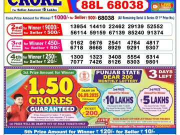 2025-09-26 Dear Seagull Friday Weekly Lottery 8 PM Result 26-09-25  2025-09-26 Punjab State Dear 50 colt Friday Weekly Lottery 6 PM Result 26-09-25  2025-09-26 Dear Dasher Friday Weekly Lottery 6 PM Result 26-09-25  2025-09-26 Labhlaxmi Glow Friday Weekly Lottery 4 PM Result 26-09-25  2025-09-26 Dear Meghna Friday Weekly Lottery 1 PM Result 26-09-25  2025-09-25 Dear Sandpiper Thursday Weekly Lottery 8 PM Result 25-09-25  2025-09-25 Punjab State Dear 50 chief Thursday Weekly Lottery 6 PM Result 25-09-25  2025-09-25 Dear Dancer Thursday Weekly Lottery 6 PM Result 25-09-25  2025-09-25 Labhlaxmi Glad Thursday Weekly Lottery 4 PM Result 25-09-25