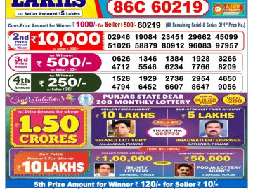 Punjab State Dear 50 Jackal Saturday Weekly Lottery 6 PM Result 09-08-25 0 Likes 4 Views Share now: XFacebookPinterestRedditVKDiggLinkedinMix Related Articles 0 5 Punjab State Dear 50 colt Friday Weekly Lottery 6 PM Result 29-08-25 0 6 Dear dasher friday weekly lottery 6 pm result 14-2-25 0 2 Dear Empire Sunday Weekly Lottery 6 PM Result 05-10-25 0 4 Punjab state dear 10 silver wednesday weekly lottery 6 pm result 12-2-25